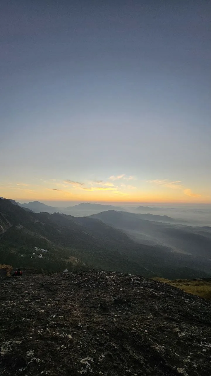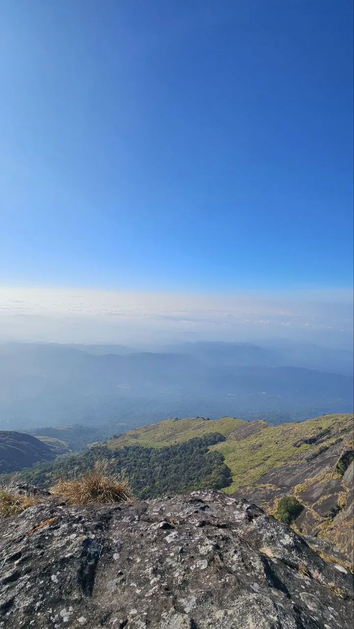 The trail transforms every kilometer – from lush tea gardens to grasslands and finally rocky cliffs near the summit. Unlike crowded tourist spots, Chokramudi retains a raw, untouched charm. The cool mountain air carries the scent of wild herbs, while the only sounds are birdsong and your footsteps.